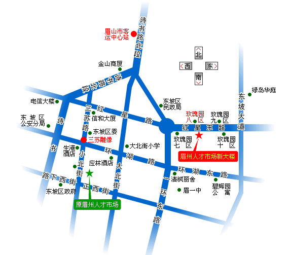 眉山市人力資源市場(chǎng)(眉州人才市場(chǎng))新地址簡(jiǎn)圖
