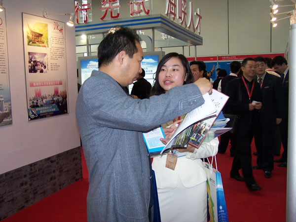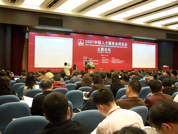 由中國人才交流協(xié)會、上海市人事局和浦東新區(qū)人民政府主辦的2007中國人才服務業(yè)博覽會于2007年11月15-16日在上海浦東展覽館舉行,中共中央政治局委員、上海市委書記俞正聲出席了開幕儀式并宣布開幕,中組部副部長、人事部部長尹蔚民,上海市委副書記、市長韓正到會致詞。眉州人才市場由分管領導親自帶隊參會,與多家國家級、省級人才市場親切交流,并達成一定的網(wǎng)上交流等合作意向。